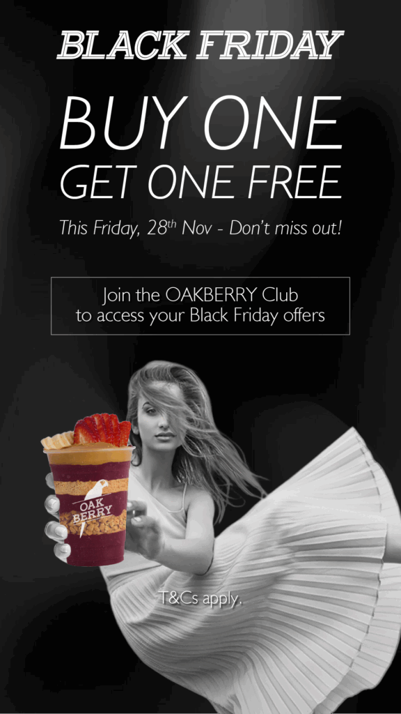 Download the MY OAK app and become an OAKBERRY loyalty member, where you can earn points, access rewards, and redeem amazing offers, all just by eating your favorite Oak.